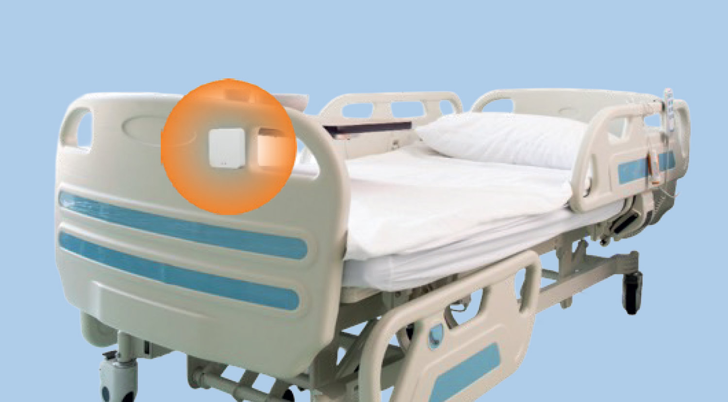 A proximity module mounted near the patient’s bed creates a monitored zone.
